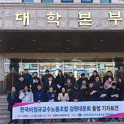 본인 및 한국비정규교수노조 강원지부 소개 한국비정규교수노동조합 강원지부장 최승기입니다. 저희 강원지부는 강원대 분회와 강릉원주대 분회가 함께 모여 출범했습니다. 강원대 분회는 도내 대학 최초로 2020년 1월 공식…