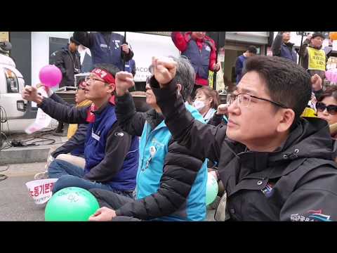 3월 6일 오후 4시에 원주 중앙동 농협 앞에서 개최된 민주노총 총파업 총력투쟁 강원지역대회.