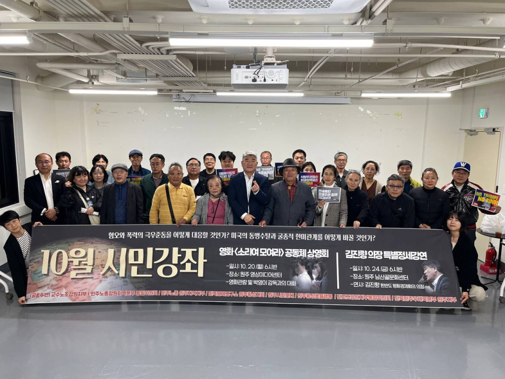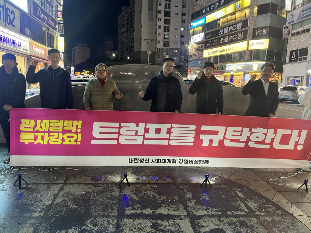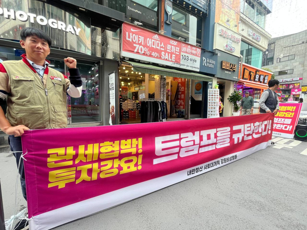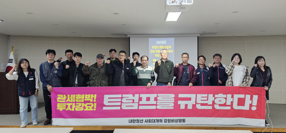 [본부소식] 불평등한 대미투자 거부 반트럼프 투쟁 기록 · NO트럼프 시군별 집중선전전 강릉동해삼척원주춘천태백· 10월 18일 NO트럼프 강원지역 집중행동춘천 명동 문화의 거리 일대· 트럼프 경제·안보 위협 대응 특별 정세 강연 동해원주