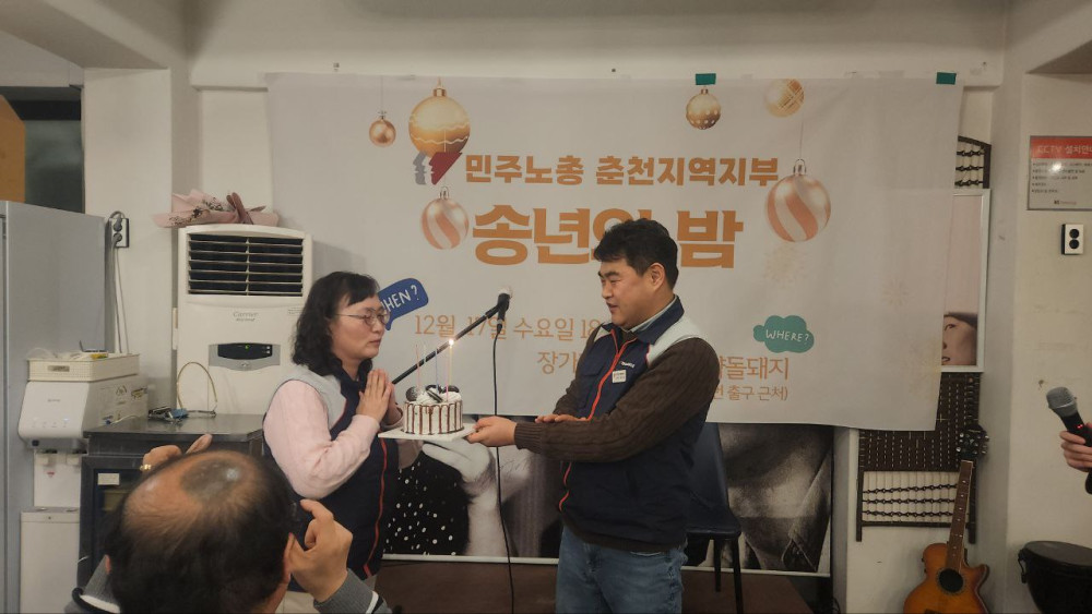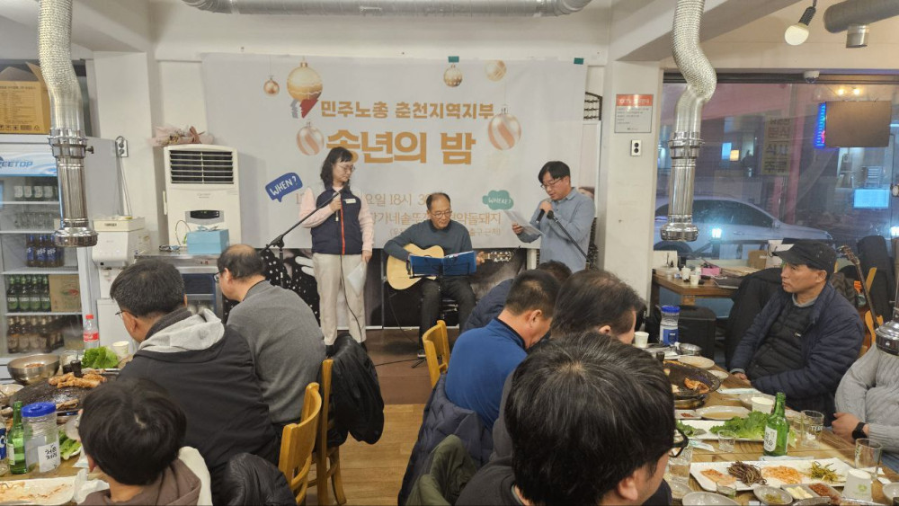 2025년 12월 17일, 춘천 모 식당에서는 민주노총 춘천지역지부의 한해를 마무리하고, 2026년에도 중단 없는 투쟁을 결의하는 송년의 밤이 열렸습니다. 30명 가량의 인원이 … 더보기