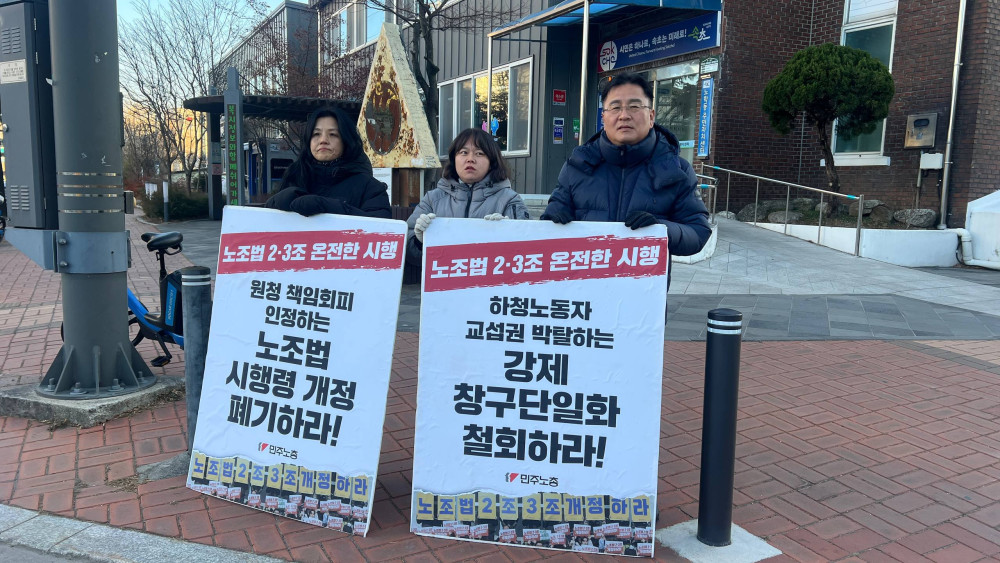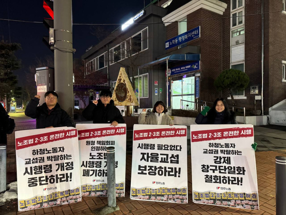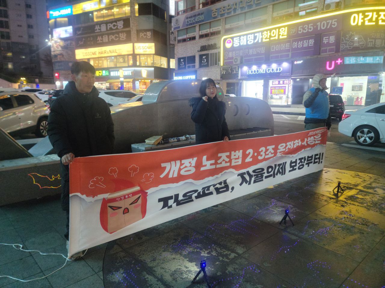 [본부소식] 12월 한 달 <개정 노조법 취지 무력화하는 노동부 시행령 저지 실천행동> 결과 보고 12월 2일 동해 우리은행 앞 12월 4일 원주 고용노동지청 앞 12월 5일 강릉 고용노동지청 앞 12월 10일 속초 만천사거리 12월 11일 춘천 팔호광장 12월 12일 강릉 고용노동지청 앞 12월 17일 삼척우체국 앞 12월 17일 태백 황지연못 12월 18일 속초 만천사거리 12월 18일 춘천 팔호광장 12월 26일 속초 만천사거리 12월 29일 강릉 고용노동지청 앞 12월 30일 동해 우리은행 앞 12월 30일 원주 고용노동지청 앞 12월 30일 춘천 팔호광장 >12월 30일 태백 고용노동지청 앞
