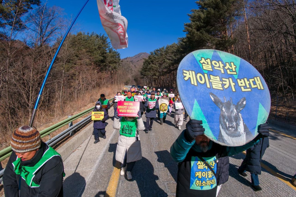2026년 2월7일(토) 오전11시부터 설악산 국립공원 남설악탐방지원센터 인근에서  원주 촛불행동, 저스피스, 민주노총 원주지역지부, 아카데미친구들과 강원생태네트워크, 홍천 양수발전소건설반대대책위 주민, 그리고 양양과 속초에서 활동하는 케이블카반대설악권주민대책위, 그리고 각 지역에서 참가한 60여명이 오색케이블카 반대 행진과 행사를 벌였습니다.