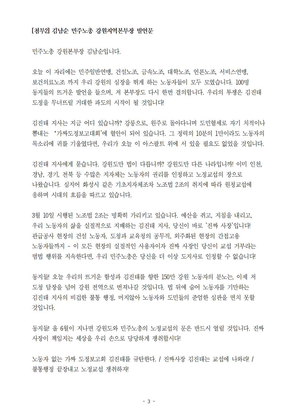 [보도자료] 노정협의‧원청교섭 거부하는 강원도 규탄! 민주노총 강원지역본부 공동투쟁의 날 진행 > 보도자료/기자회견