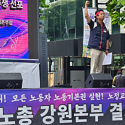 9월 13일(토),민주노총 강원지역본부는 모든 노동자의 노동기본권-사회대개혁을 향한 우리의 요구를 가지고 하반기 투쟁을 선포하는 전국 동시다발 결의대회를 진행했습니다! 이를 시작으로 노동 존중 강원대개혁을 향한 투…