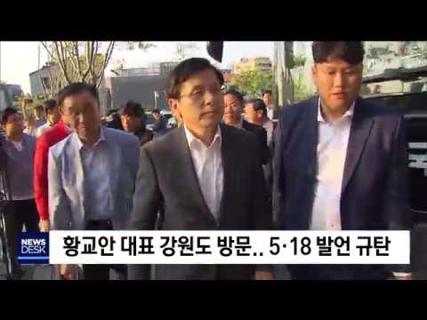 이에 앞서 지역 시민.사회단체와 노동단체로 구성된 강원지역연석회의는 황 대표의 5.18 발언에 대한 규탄 기자회견을 갖고, 황 대표에게 물을 뿌리며 항의했습니다.